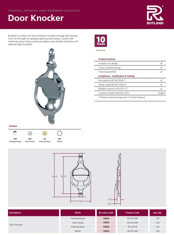 Door Knocker and Viewer Set, Urn Style (Includes Intumescent)