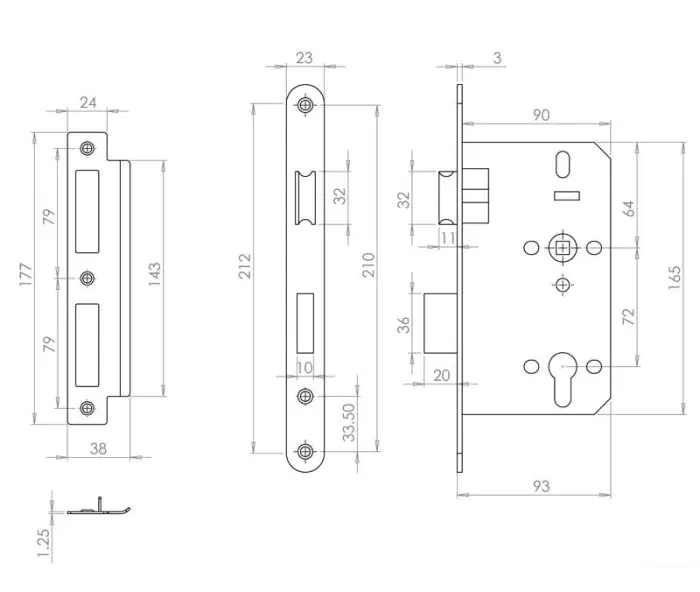 Bathroom Hub Kit for use with a Euro Profile Deadlock or Din Lock
