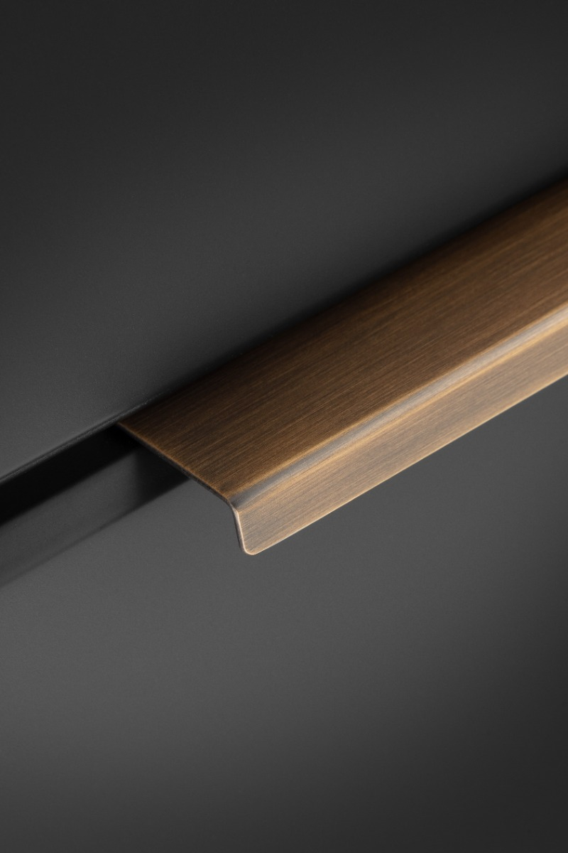 This Tilly Finger Pull is a simplistic but modern design solid brass finger pull. It has a flat edge to install at the back of the drawer with a flat handle that sits over the top of the panels with a straight, flat dropped edge. This design allows for easy grip and a minimalist look.