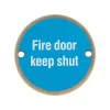 Fire door keep shut symbol sign. A standard door sign with the warning text displayed on a circular plate with two fixing holes. Available in SSS, BSS, SAA & MB.