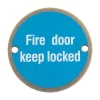 Fire door keep shut symbol sign. A standard door sign with the warning text displayed on a circular plate with two fixing holes. Available in SSS, BSS, SAA & MB.
